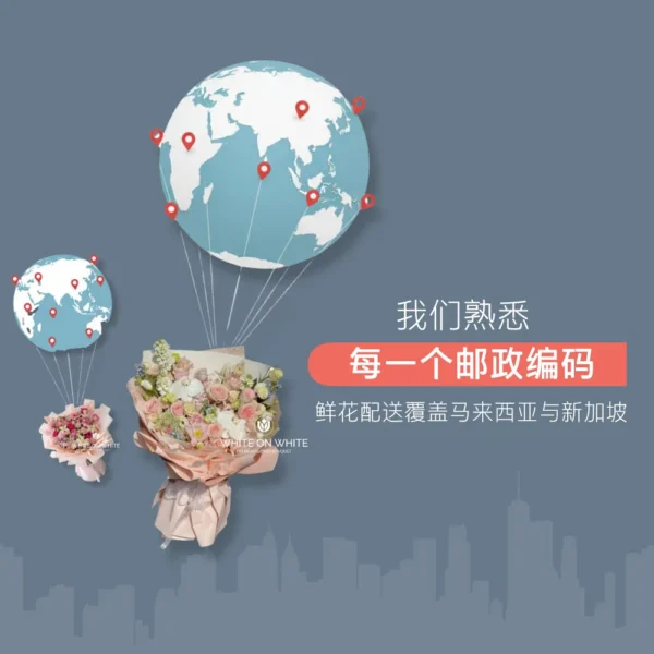 At White on White, we understand how important it is to not just send flowers, but to send your love and wishes wrapped in a beautiful bouquet. As part of our commitment to exceed expectations, we’re thrilled to offer same-day flower delivery in Kuala Lumpur, Malaysia. Forget about the time zone differences or last-minute panic, we’ve got you covered!