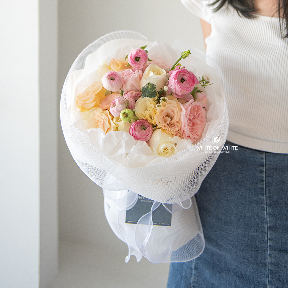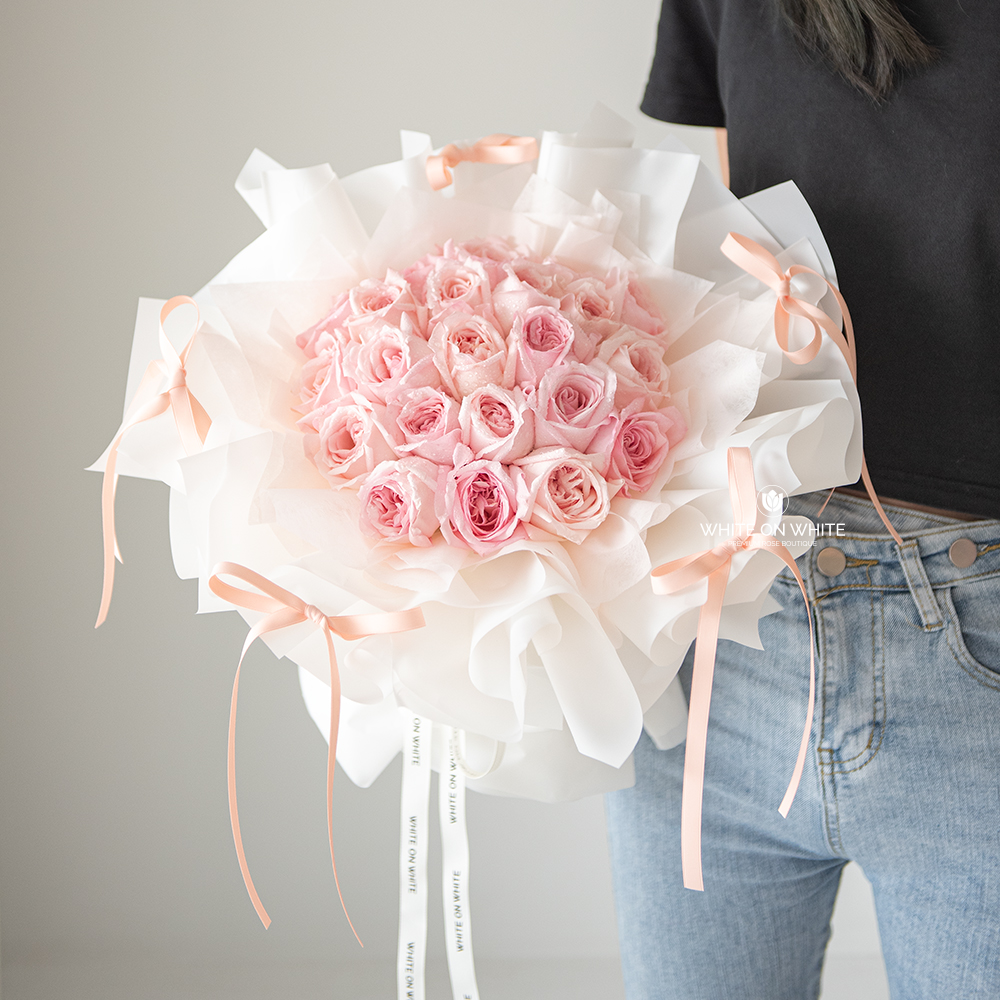 Moreover, this interplay of color and texture makes the lychee rose an eye-catching addition to gardens and floral arrangements. At White On White, our flower shop, we highlight this exquisite flower in many of our bouquets. Ultimately, the combination of its stunning hue and luxurious feel makes the lychee rose a standout choice for anyone looking to add beauty and sophistication to their floral arrangements. As a trusted florist in KL, we ensure that every bouquet showcases the best of what nature has to offer.