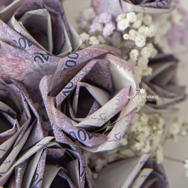 At White On White, quality is our top priority. Every money bouquet, bouquet duit, and cash bouquet we create is crafted with the freshest, high-quality flowers and crisp, brand-new bills. We know how important it is for your gift to not only look stunning but also last. That’s why our expert florists carefully select the best flowers and create each money bouquet with love and attention to detail.