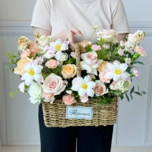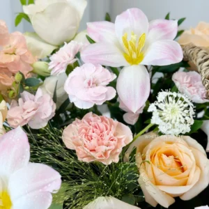 mother's day gift malaysia, gift for mom, only you floral basket, pink carnation with chamomile