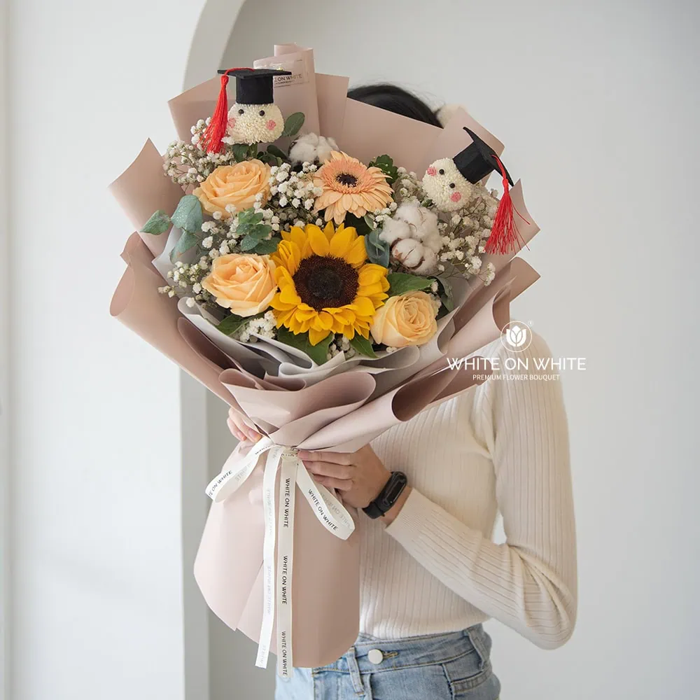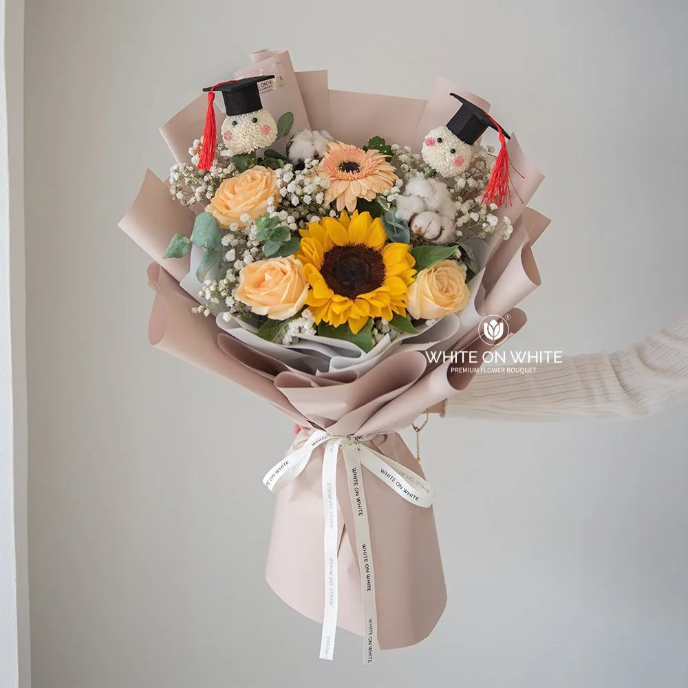Are there more wishes you want to convey? Let’s personalise your message and deliver it with this graduation flower bouquet! The graduate deserves your compliments in this meaningful celebration!