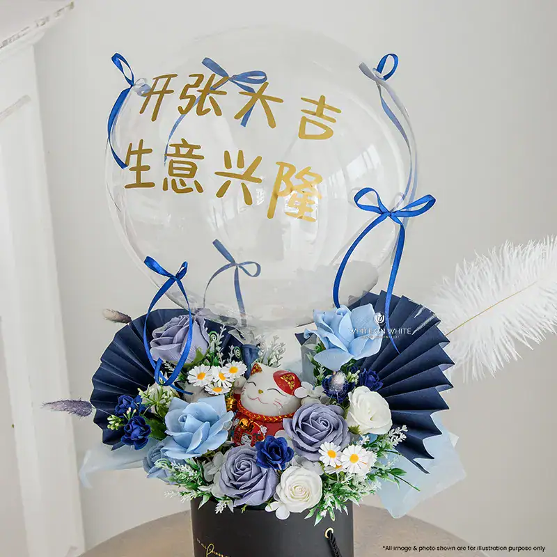 Elegant, modern, and full of prosperous meaning, the Blue Fortune Flower Box is designed to celebrate grand openings with confidence, blessings, and success. Styled in luxurious shades of blue and white, this arrangement symbolises strength, stability and smooth beginnings, making it a meaningful gift for any new business.