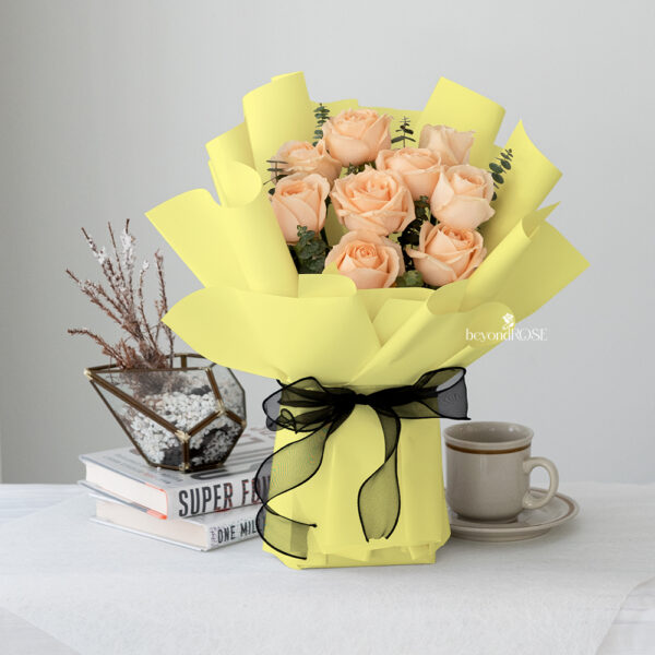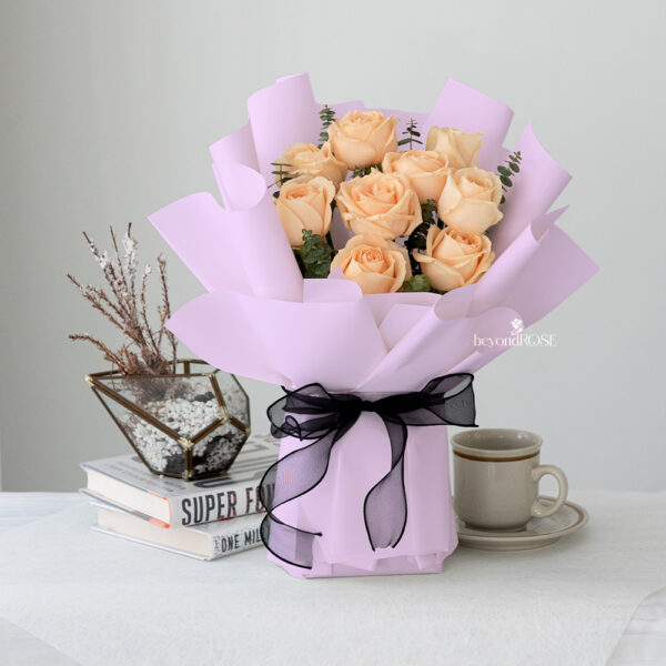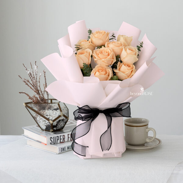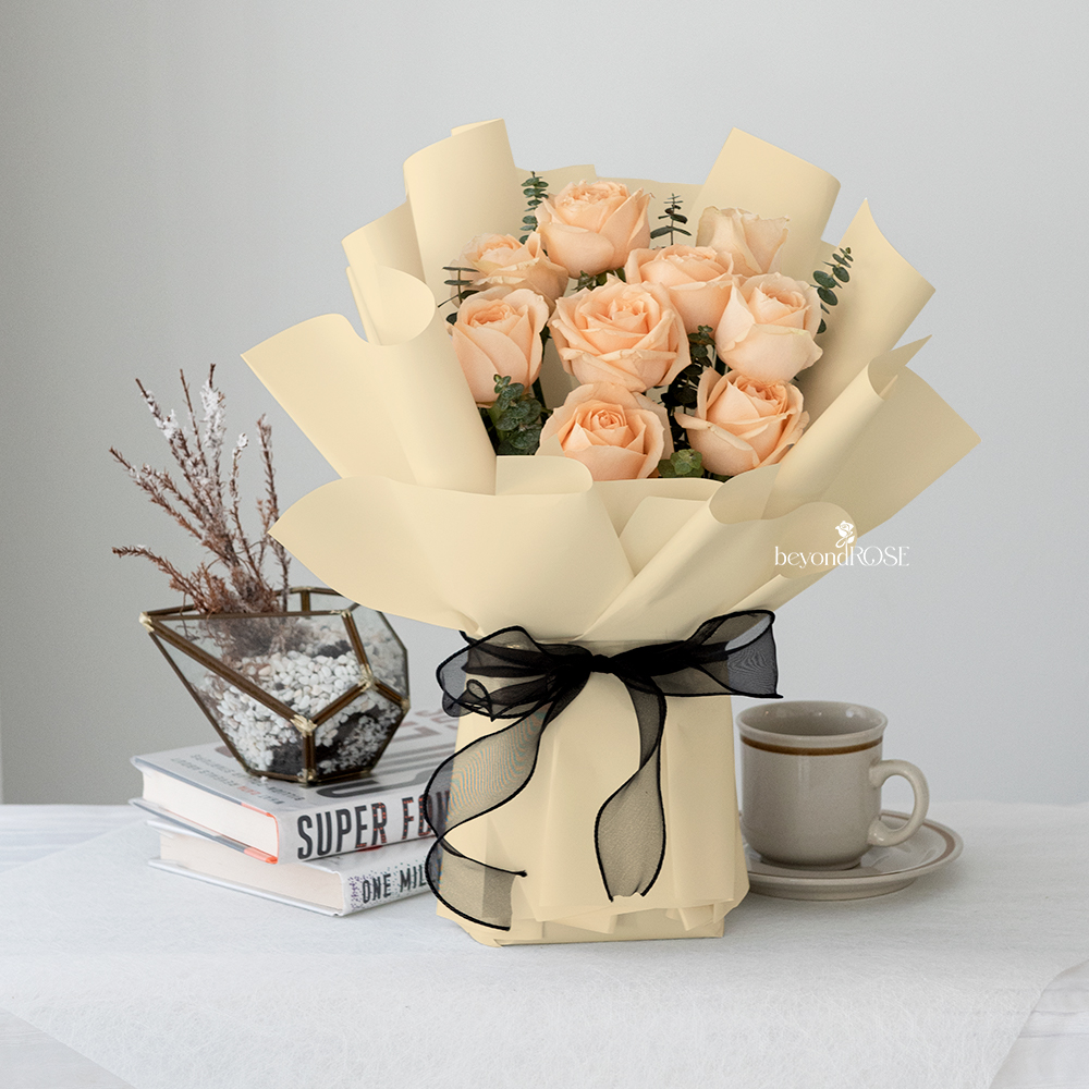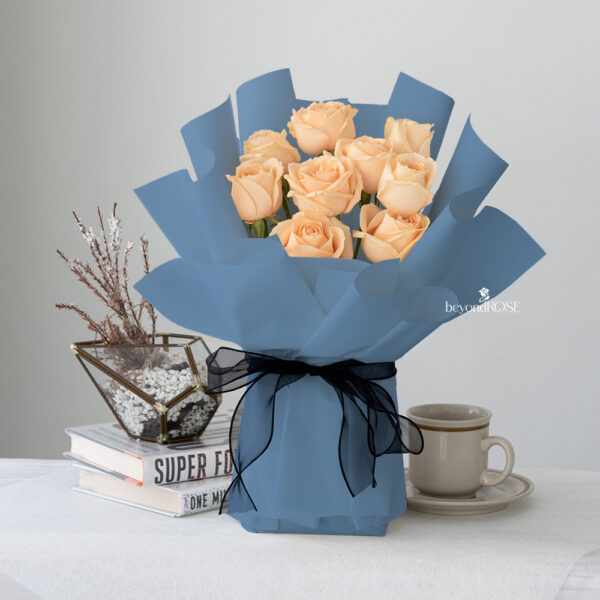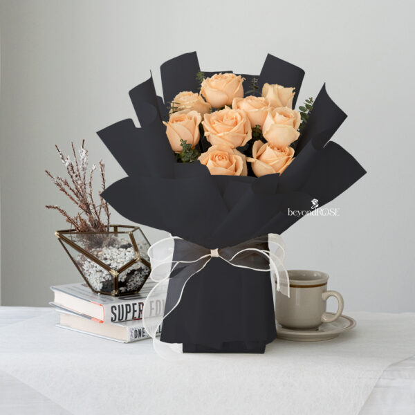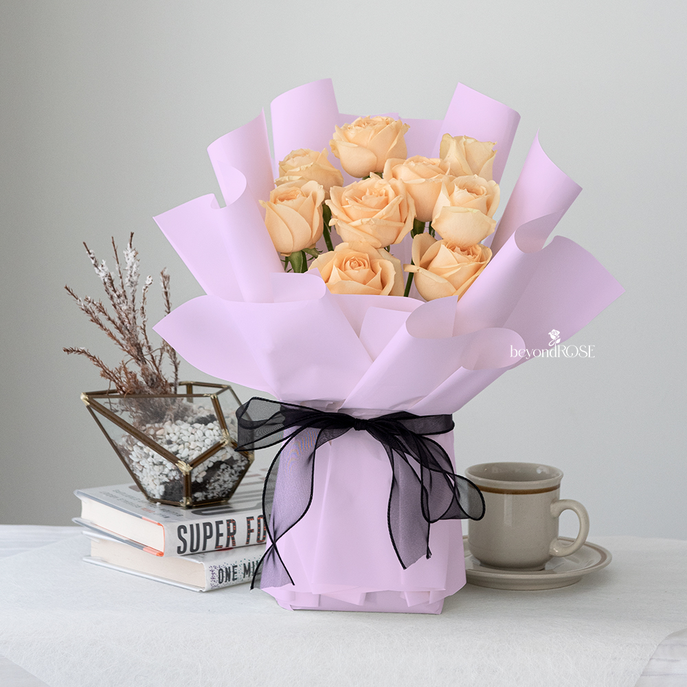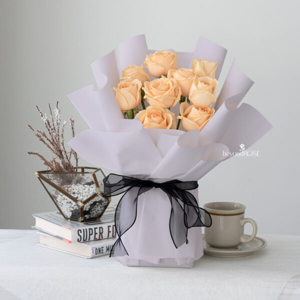 The Champagne Rose Bouquet by beyondROSE is made for those who appreciate understated beauty. While the champagne rose color may look modest in photos, it truly comes to life in person. With its soft golden-peach hue, this bouquet complements any outfit and every setting. So, whether you’re heading to a brunch, an anniversary dinner, or simply surprising someone just because.