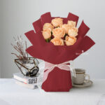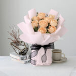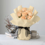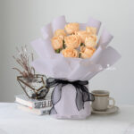 This bouquet isn’t just pretty; it’s meaningful too. The champagne rose flower meaning speaks of charm, grace, and quiet admiration. This is a great alternative to traditional rose meanings like those of pink or red. The soft champagne rose petals bring a sense of calm, balance, and elegance to any celebration, big or small.