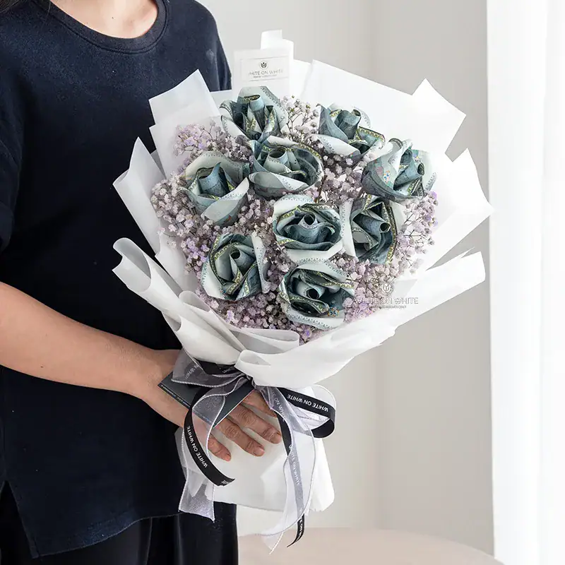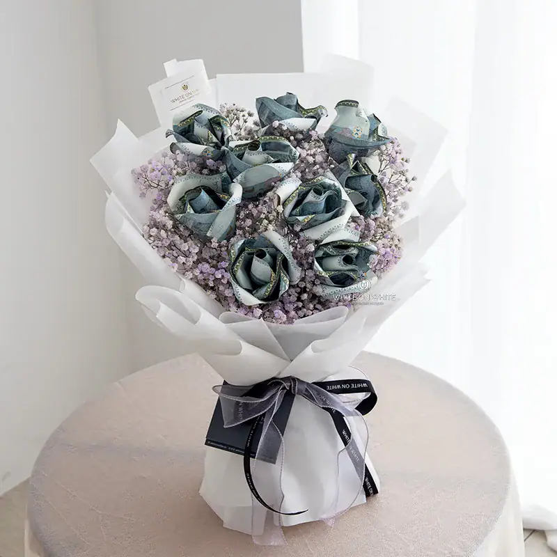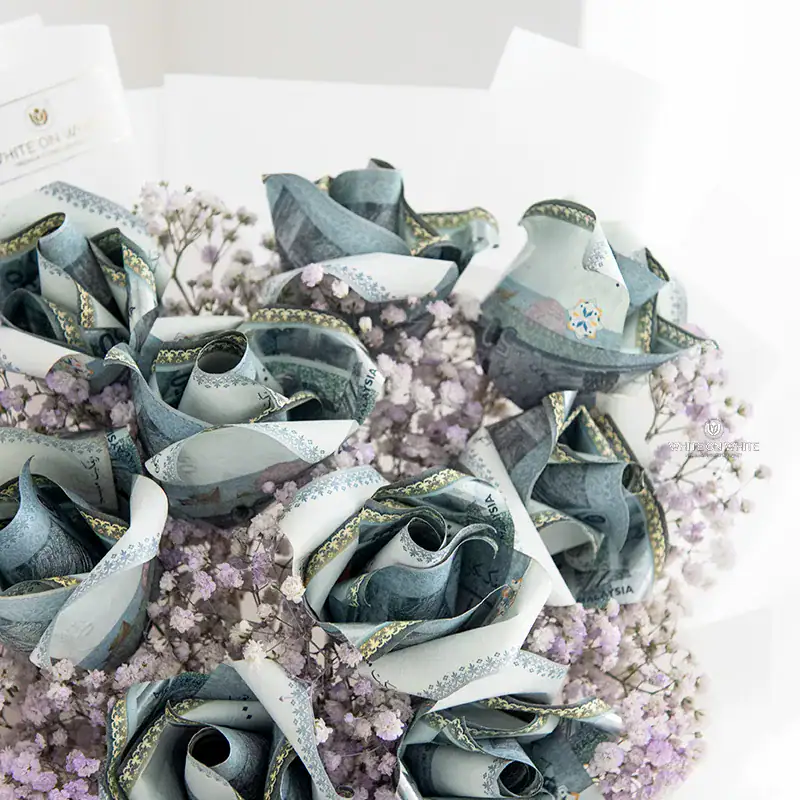 Each cash rose is intricately crafted from RM50 notes / RM100 notes, symbolizing not only love but also the hope for a bright and prosperous future. The design of this money bouquet transforms the cash into elegant roses, representing both beauty and financial growth. This combination of wealth and affection makes the Deep Love Money Bouquet a meaningful and unforgettable gift.
