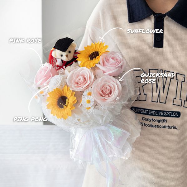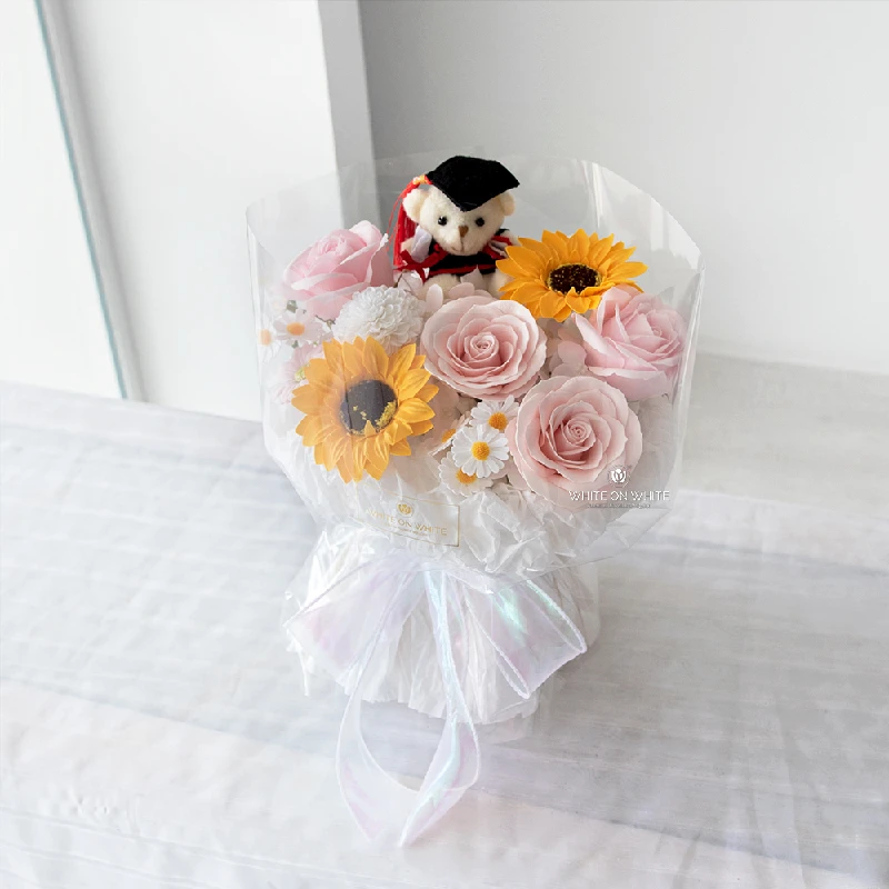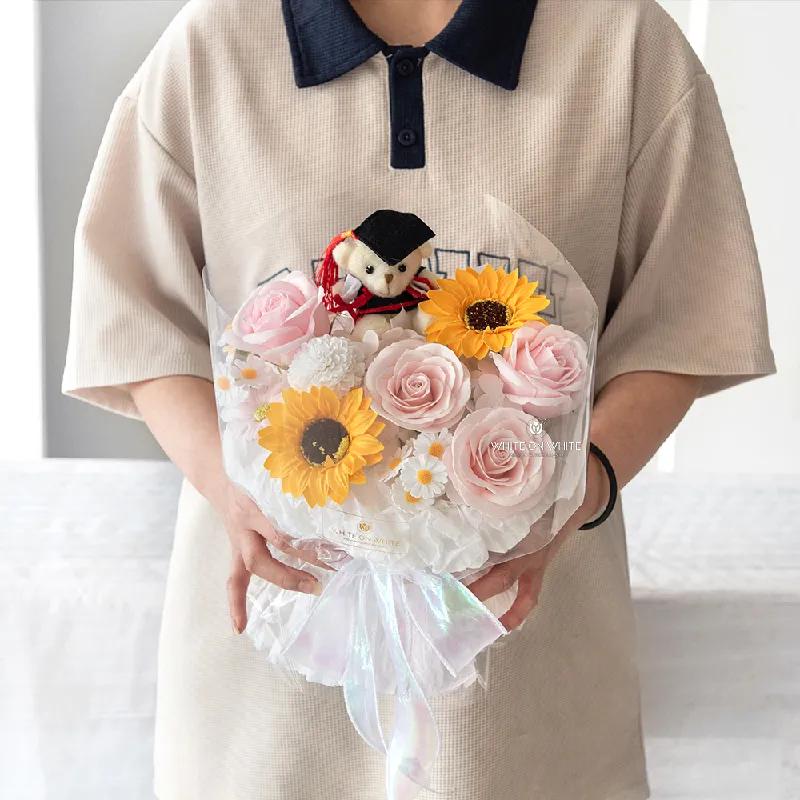 Every Endless Future Bouquet is arranged by our lead florist, who is equally skilled in designing both fresh and soap flower arrangements. With a deep passion for floral artistry, our team ensures that every graduation bouquet looks elegant, balanced, and celebratory.