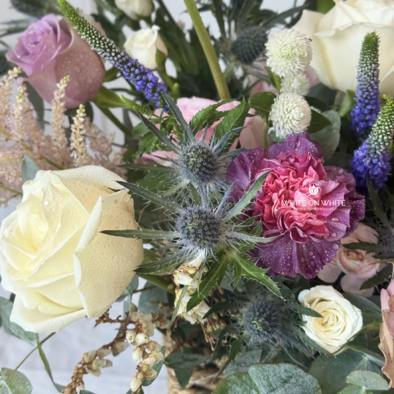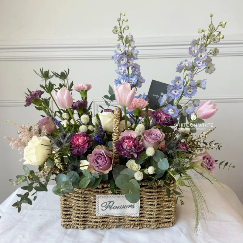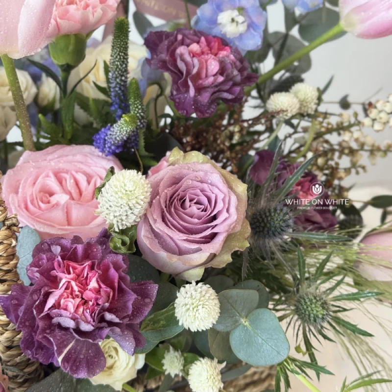 This bouquet requires a 3-day pre-order. As the flowers are imported, if we’re unable to get the specific flowers within 3 days, we may substitute them with similar flowers or switch to another design of the same value