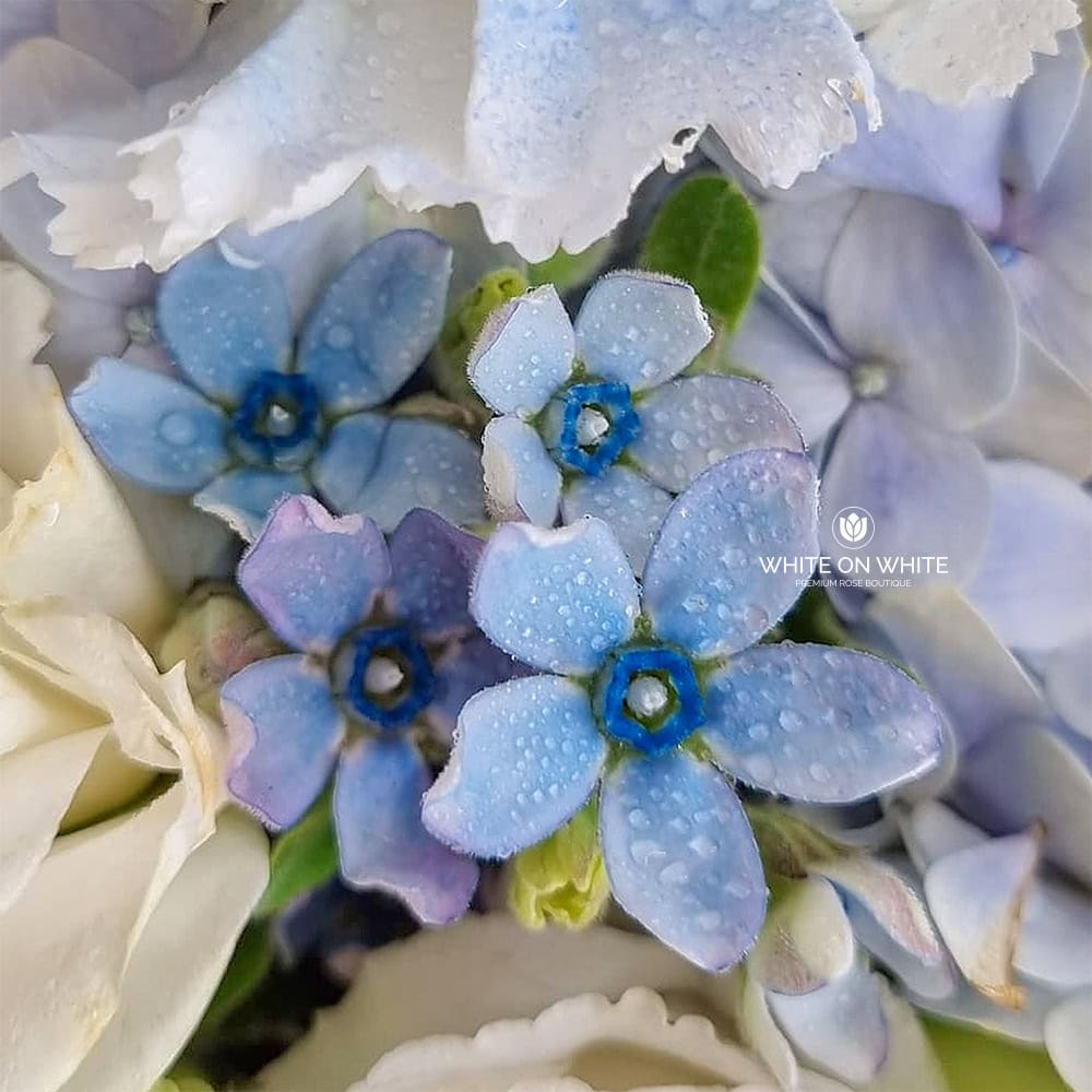 - To balance the blue tones, we’ve added the timeless beauty of White Tulips and White Roses, symbols of purity and grace. These flowers add a touch of refinement, making the bouquet perfect for any milestone celebration.