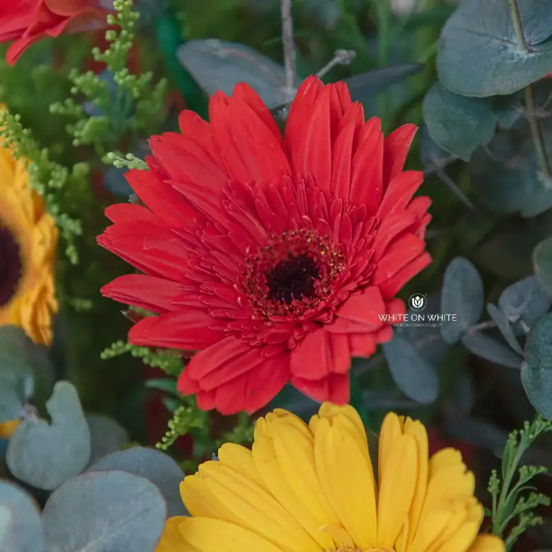 This grand opening flower stand features a bold mix of red and yellow gerberas, symbolising prosperity, good luck, and cheer. Red gerberas represent enthusiasm and strength which is ideal way to wish success for new business. Meanwhile, yellow gerberas bring brightness, joy, and fresh energy. Perfect for starting a new journey with positivity and confidence.