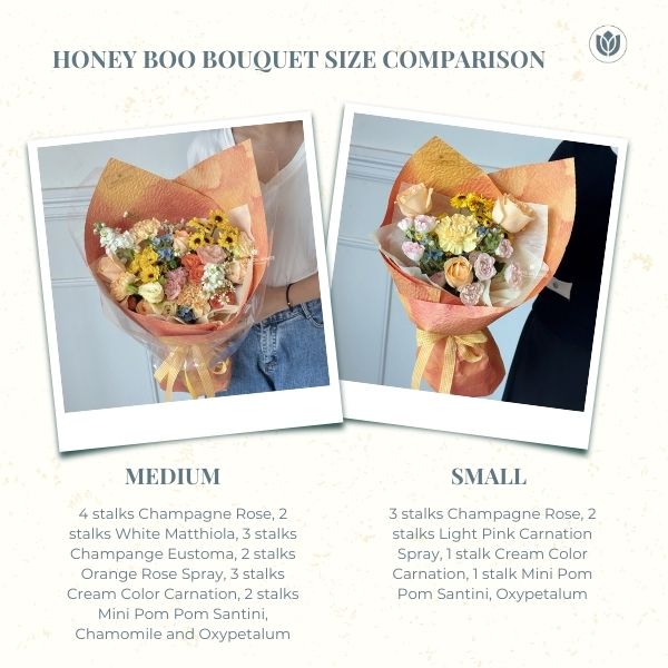 The Honey Boo Bouquet is available for same-day delivery in KL, Ipoh, and Penang. No pre-order required. Just simply order before our daily cut-off time (4PM) and we’ll take care of the rest. As a trusted KL florist and Ipoh flower shop, we’re here to help you create beautiful moments with ease.