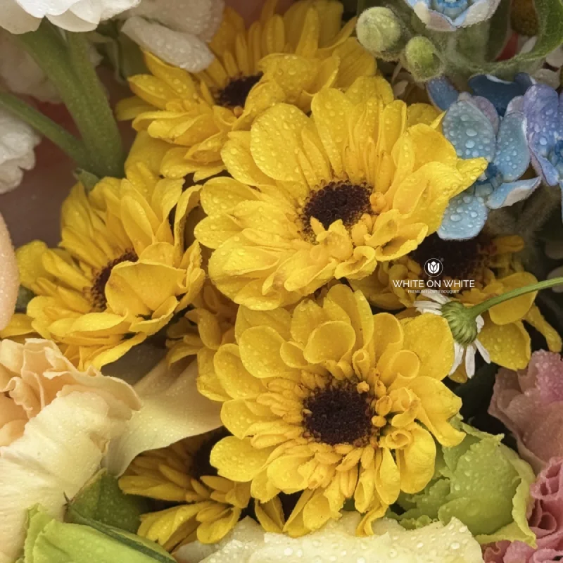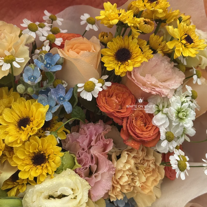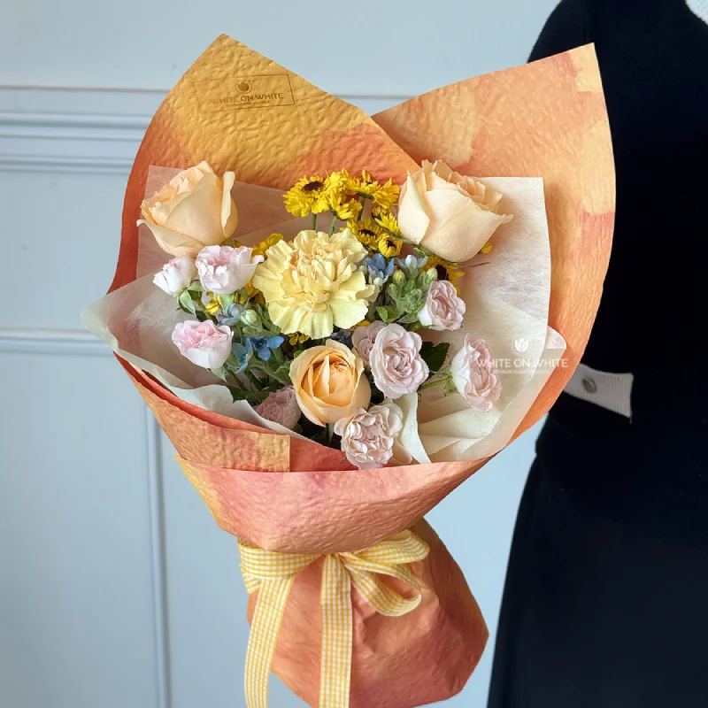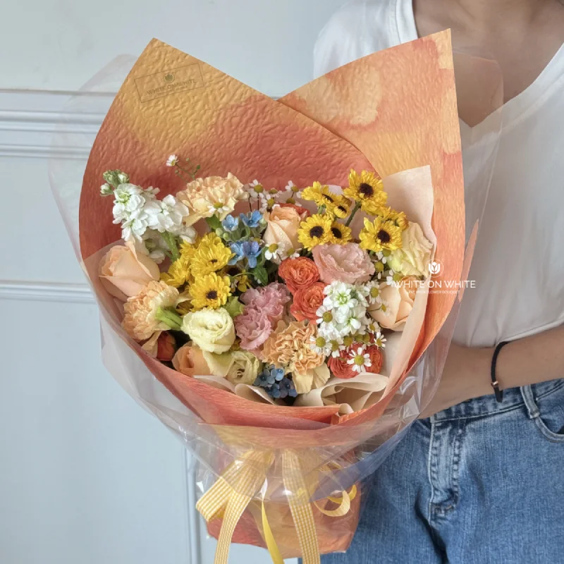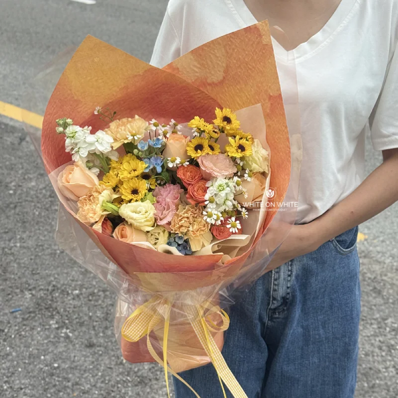 This bouquet is made with fresh-cut premium flowers and has a lifespan of 2–5 days, depending on room conditions and flower care. To enjoy its beauty for longer: