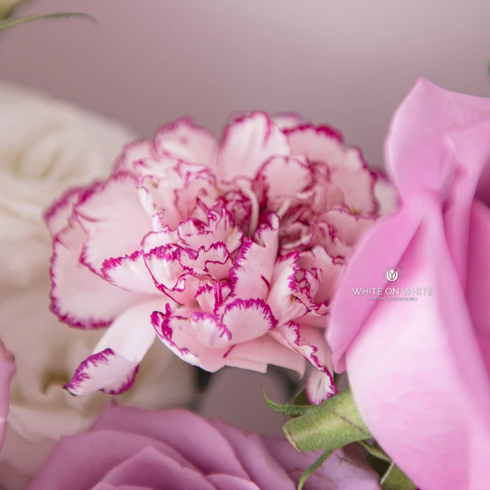 - This romantic arrangement features 5 stalks of Purple Carnation, symbolising admiration and deep affection.