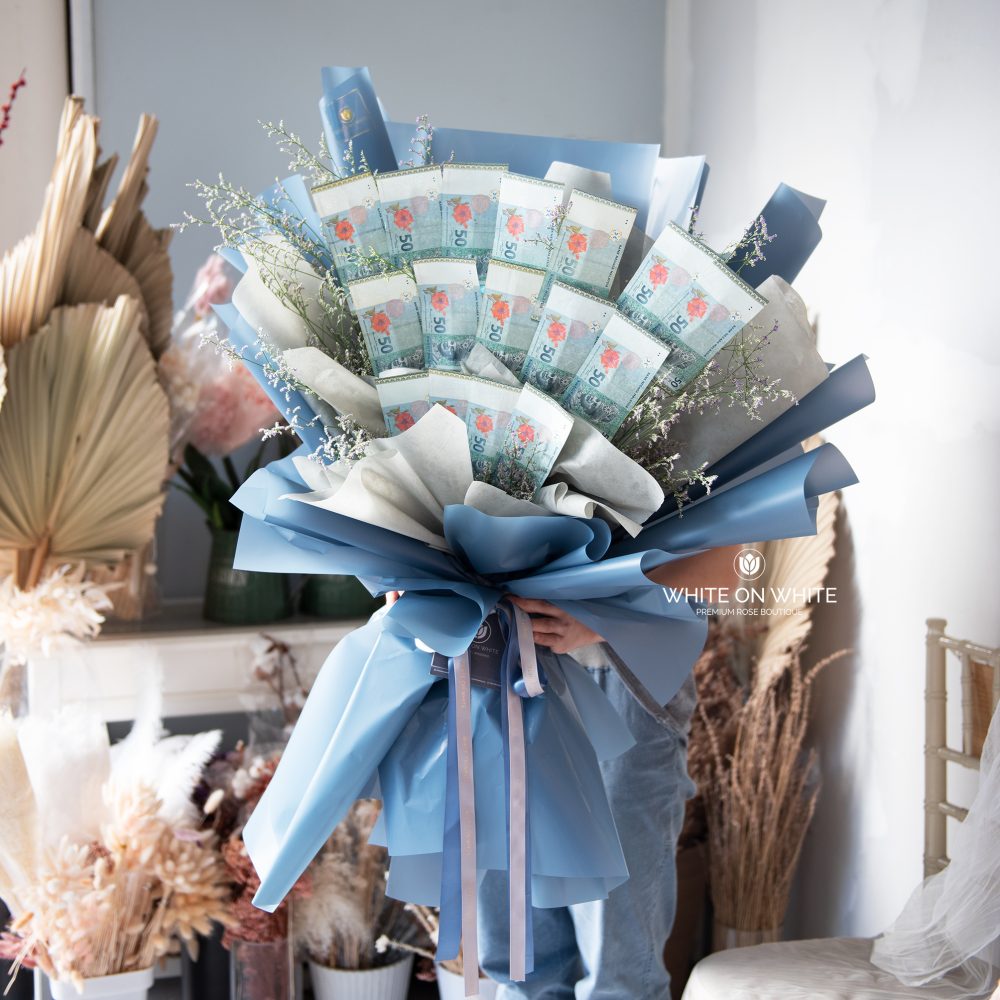Introducing the Lavish Money Bouquet – a bold and unique gift that combines beauty and wealth in one stunning arrangement. This isn’t your typical flower bouquet. Instead, it’s a money bouquet designed to impress, surprise, and send a powerful message. Available in three eye-catching colors – blue, pink, and black – this bouquet duit is perfect for anyone who deserves something extraordinary.