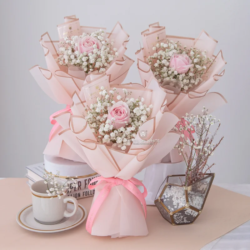 Little Smile bouquet has one aim to the receiver – bringing a delightful explosion of happiness to a birthday and precious friendship. Wrap in the pink shade, this mini bouquet brings a sense of tenderness yet heartwarming.