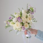 Why settle for the ordinary bridal bouquet when your wedding day deserves something as unique as your love? My Dear Bride is the perfect choice for brides who want a bouquet that’s classic yet distinctive. If you’re wearing a purple dress, this bouquet will enhance your beauty without overshadowing it. The white roses take center stage, while the soft purple accents add just the right amount of color to complement your gown.