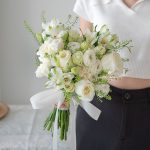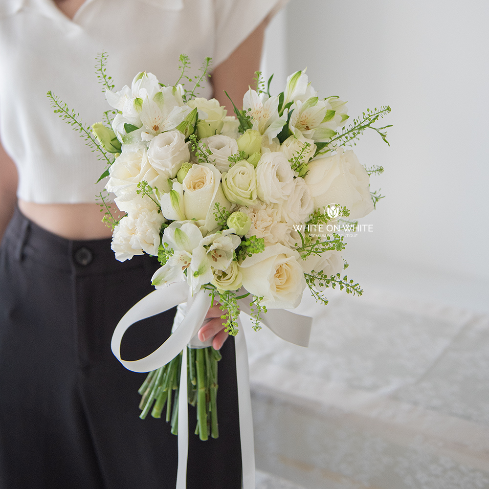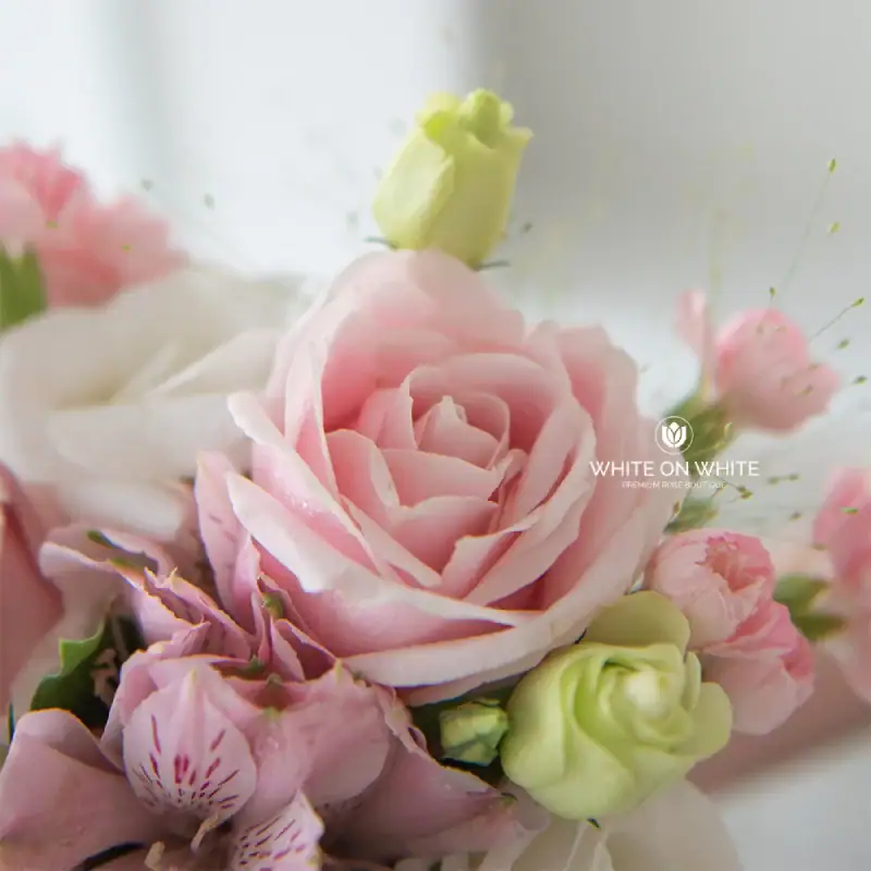 - At the center of the bouquet, there is the Pink Rose or White Rose. This flower represents love, passion, and purity. The rose is often seen as the ultimate symbol of romance, making it an ideal choice for a bridal bouquet. Whether you choose the delicate pink or the classic white, each rose speaks to the deep love and devotion you share with your partner.