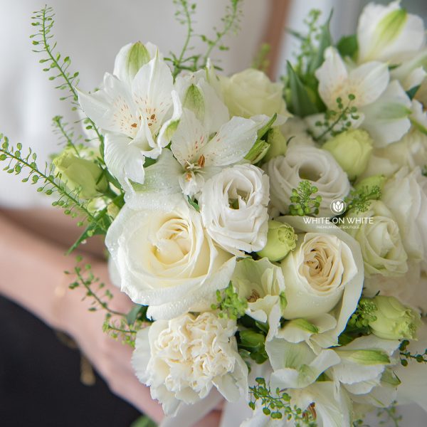 The My Juliet bridal bouquet is a romantic, timeless choice for the bride who wants to carry a piece of her love story on her wedding day. Designed in a heart shape, this medium-sized bouquet is available in two beautiful variations. You may choose whether soft pink or pure white to match with your wedding dress.