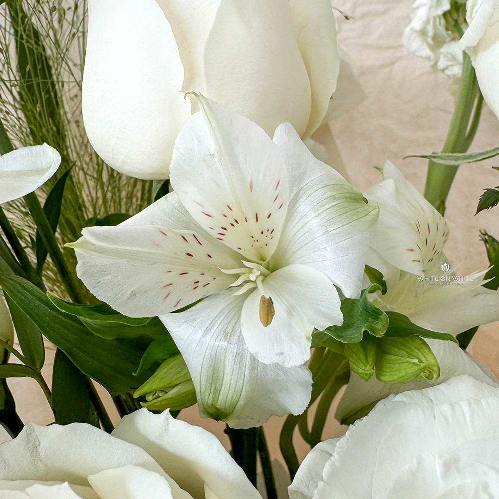 Our team of florists at White On White florist combines years of expertise with creative vision. By balancing textures, colors, and meanings, they transform fresh blooms into a romantic arrangement that feels both timeless and personal.