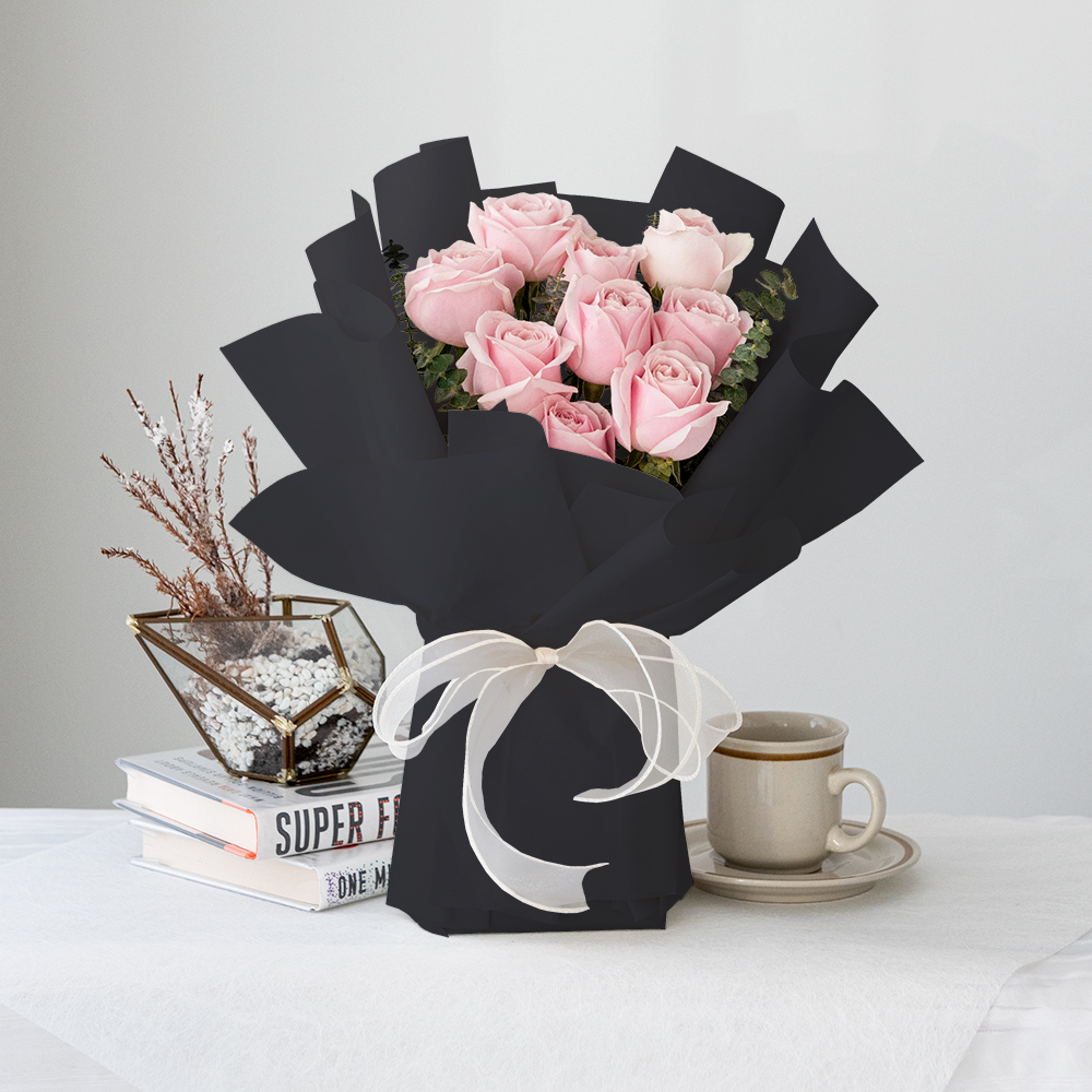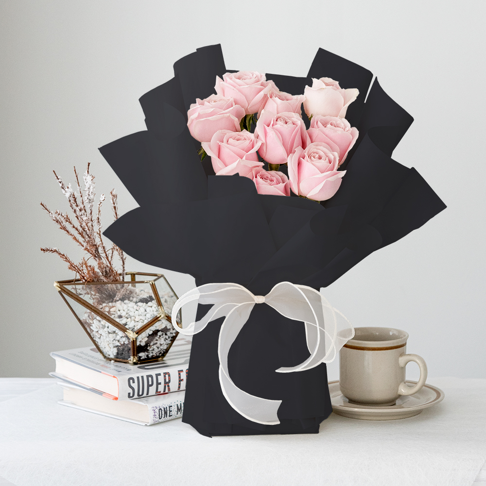 - Next comes the fun part: choosing your wrapping color. Soft tones like white wrapping create a dreamy and elegant effect, especially with pink blooms. This is perfect if you’re after a pink rose bouquet with white wrapping. Prefer something bolder or more vibrant? You have options. It’s a gifting experience that feels joyful, creative, and easy.