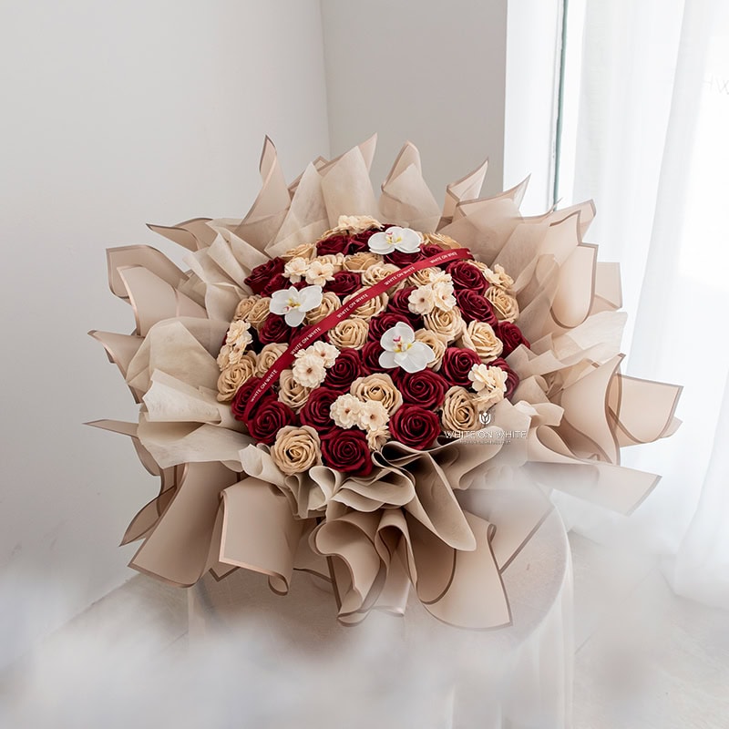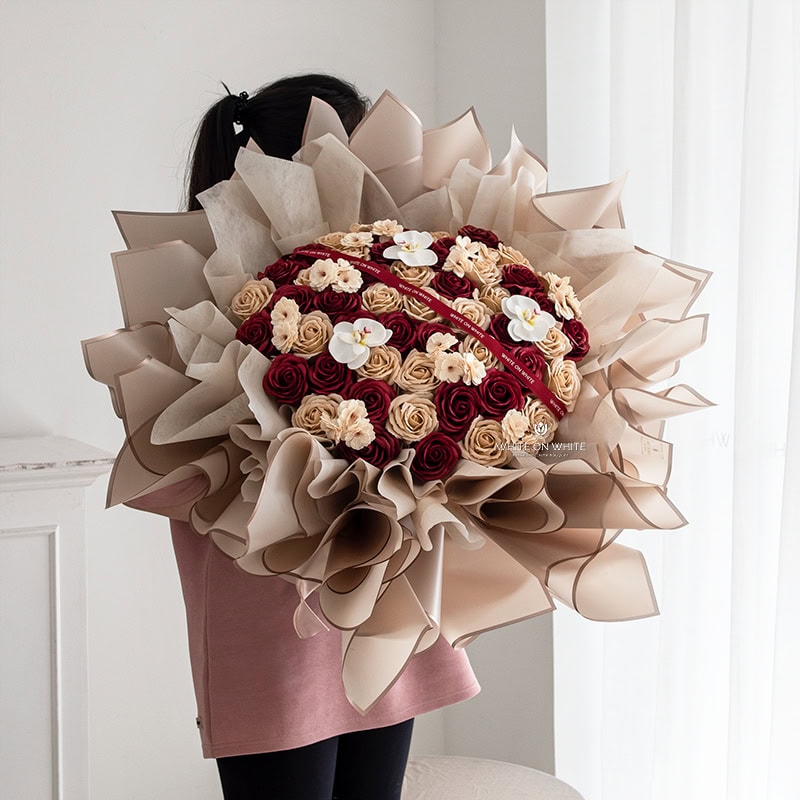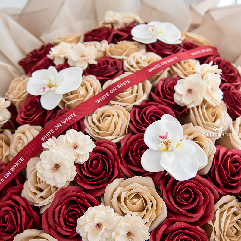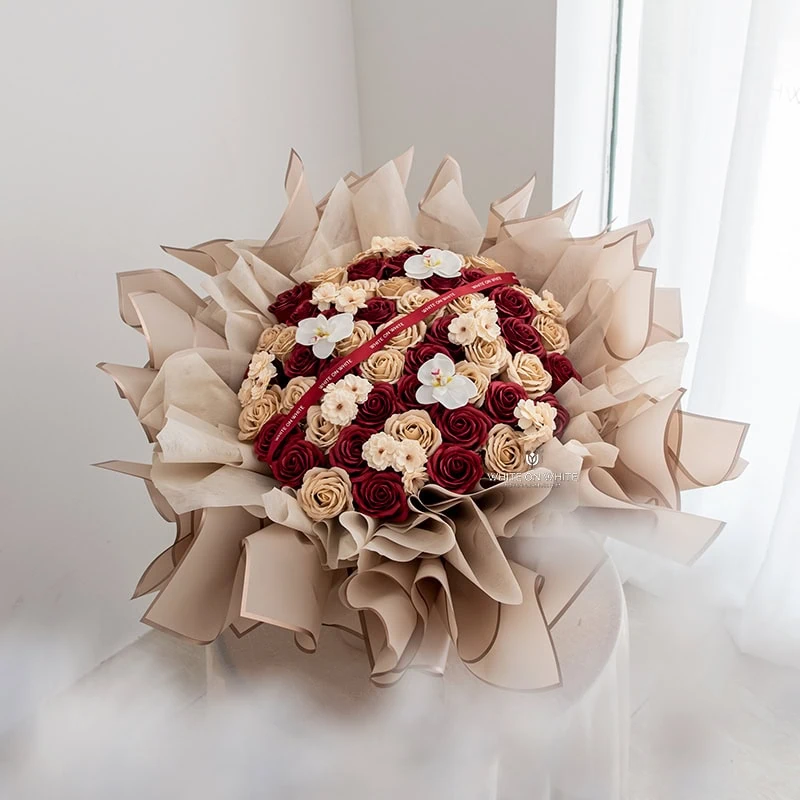 The Royal Devotion Bouquet is crafted to make every occasion feel extraordinary. Designed using premium soap flowers that resemble fresh blooms, this bouquet blends deep red roses, classic white roses, and luxurious phalaenopsis orchids to create a gift that conveys heartfelt devotion, admiration, and timeless beauty. Whether you are celebrating a birthday, anniversary, friendship, or meaningful milestone, this bouquet delivers elegance that lasts.
