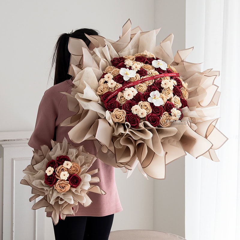 Before crafting your bouquet, our florists examine every soap flower for shape, colour, and smoothness to ensure only the best are used. This careful curating process guarantees that you Royal Devotion Bouquet will look refined, balanced, and picture-perfect.