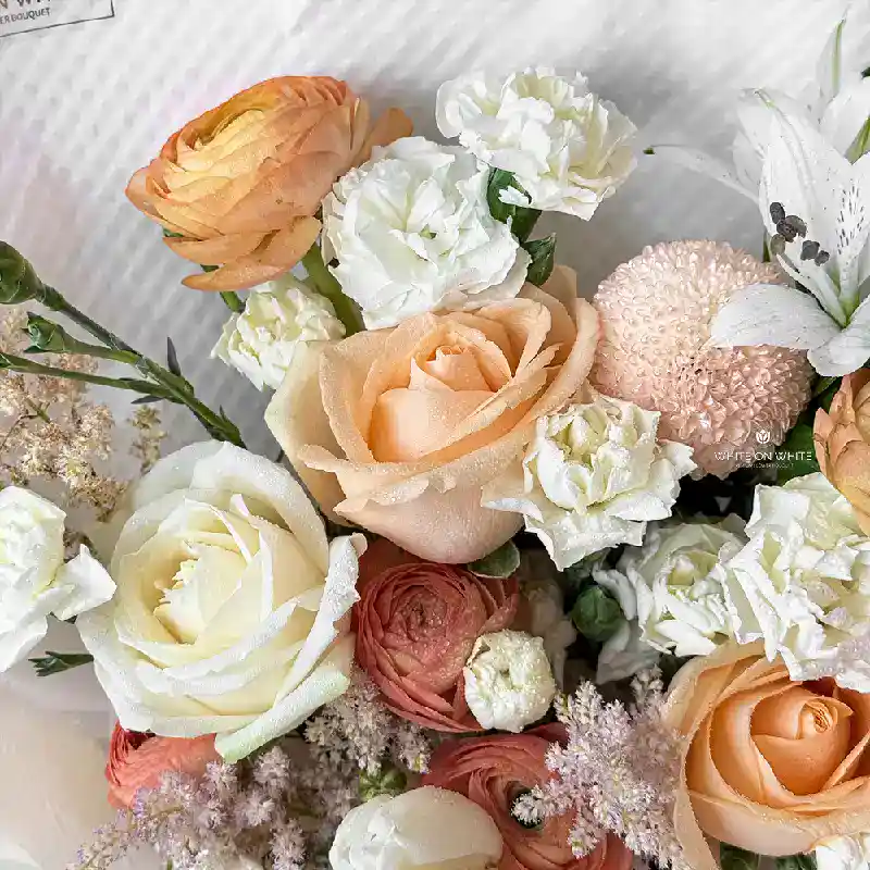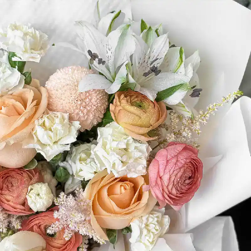 Every petal matters. That’s why we examine each bloom closely and remove even the slightest imperfections. From trimming stems to arranging the wrapping, we ensure that the Soft Pastel Bouquet arrives flawless. When you choose White On White florist, you’re not just gifting a flower bouquet, you’re gifting perfection.