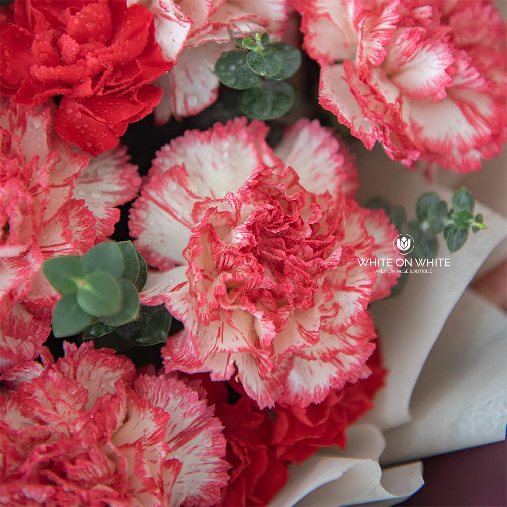 - Paired with the Red Carnation Spray, this bouquet is an embodiment of pure admiration, celebrating the strong, lasting connection between you and the special woman in your life.
