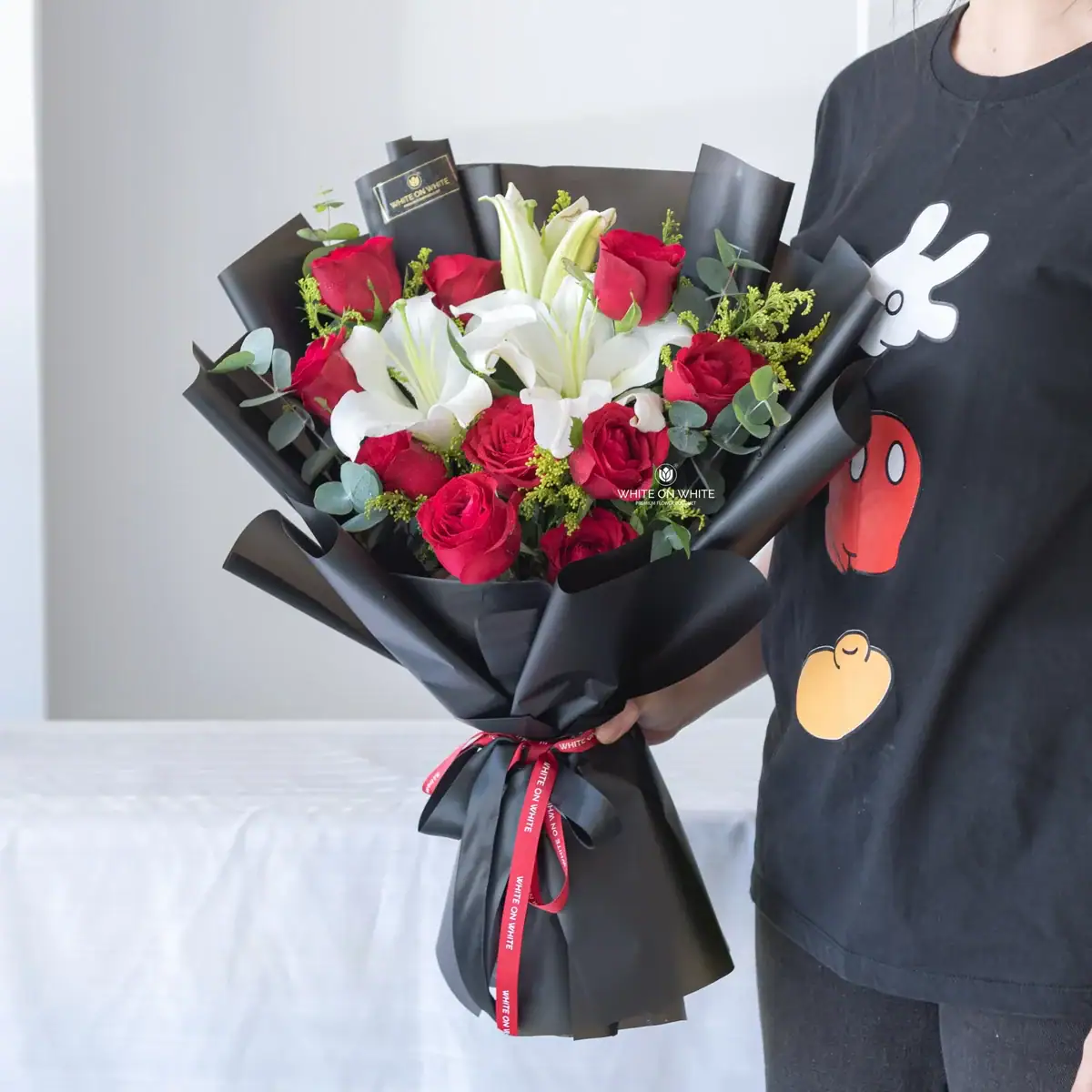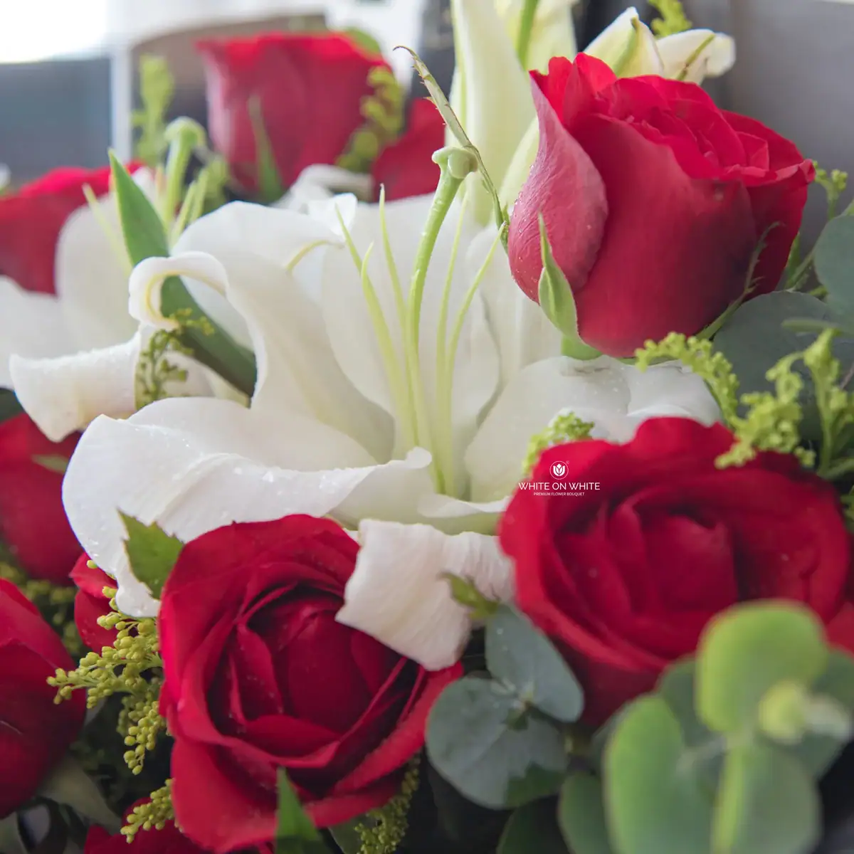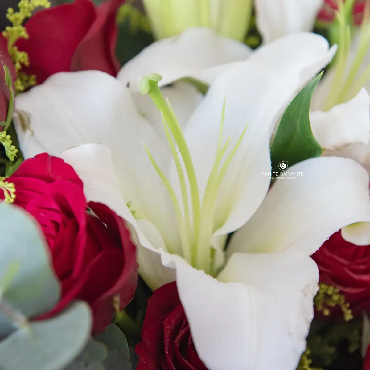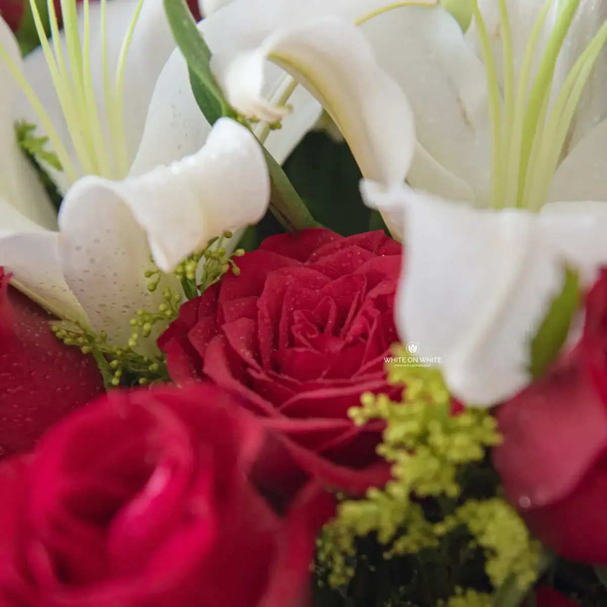 We source our blooms from the finest growers globally in Holland, Turkiye, Vietnam, India, China, Thailand, Indonesia, and several other renowned flower regions. For this Red Rose and White Lily Bouquet, we select high-altitude roses for their velvety texture and vibrant color. We pair them with premium imported lilies known for their large bloom size and lasting fragrance. We believe a luxury bouquet should look exquisite from the moment it arrives, ensuring that every bouquet we create reflects the premium standards of White On White.