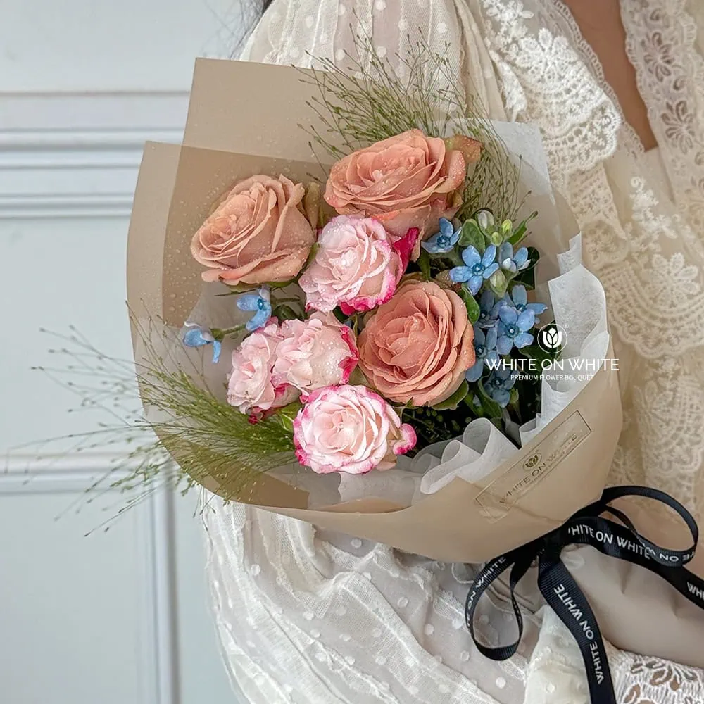 Victoria Rose Bouquet is a petite yet elegant arrangement, perfect for expressing admiration, love, or gratitude. This charming rose bouquet features a delicate blend of Cappuccino Roses, Rose Spray, Oxypetalum, and Panicum, creating a harmonious and visually appealing composition.