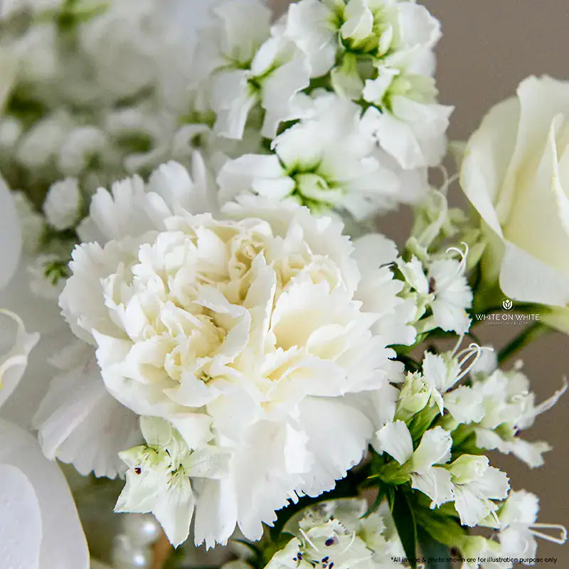 Our floral team is guided by a master florist with over 20 years of experience in the industry. Under this expert leadership, all 15 of our florists train and practise twice a week to refine their skills and perfect their techniques. This continuous training ensures every bouquet we create meets the premium quality and artistry that White On White is known for.