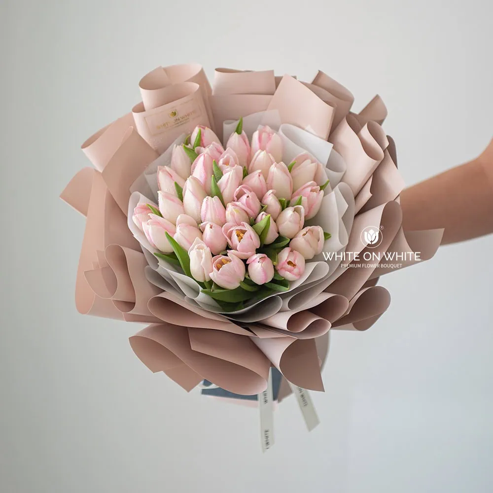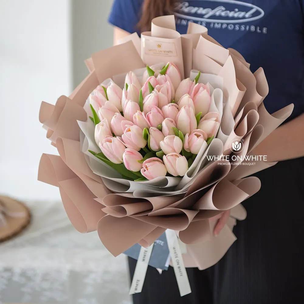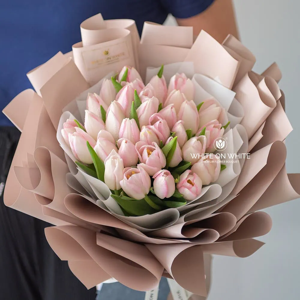 Pink tulips symbolize affection, love, and caring. They convey admiration and a sense of gratitude, making them perfect for showing appreciation to someone you care about. The soft pink hues of the tulips bring a sense of calm and positivity, making this bouquet a thoughtful gesture for any occasion.