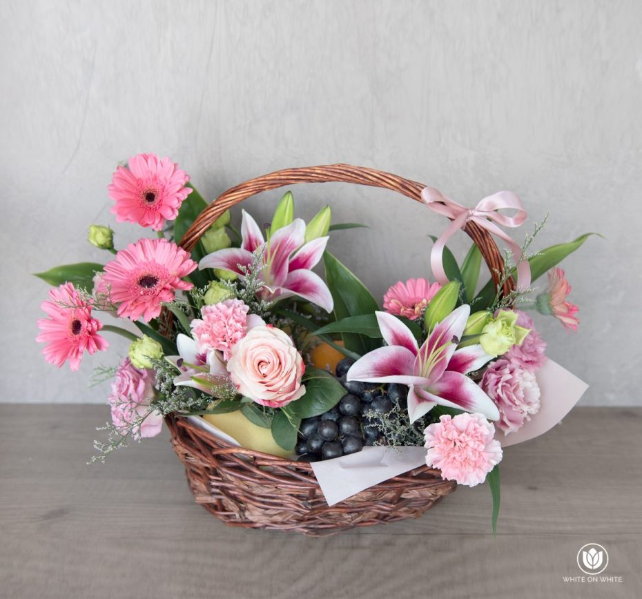 A cheerful array of hand-picked seasonal flowers brings joy and positivity, while the assortment of fresh, juicy fruits offers a healthy boost and speedy recovery.